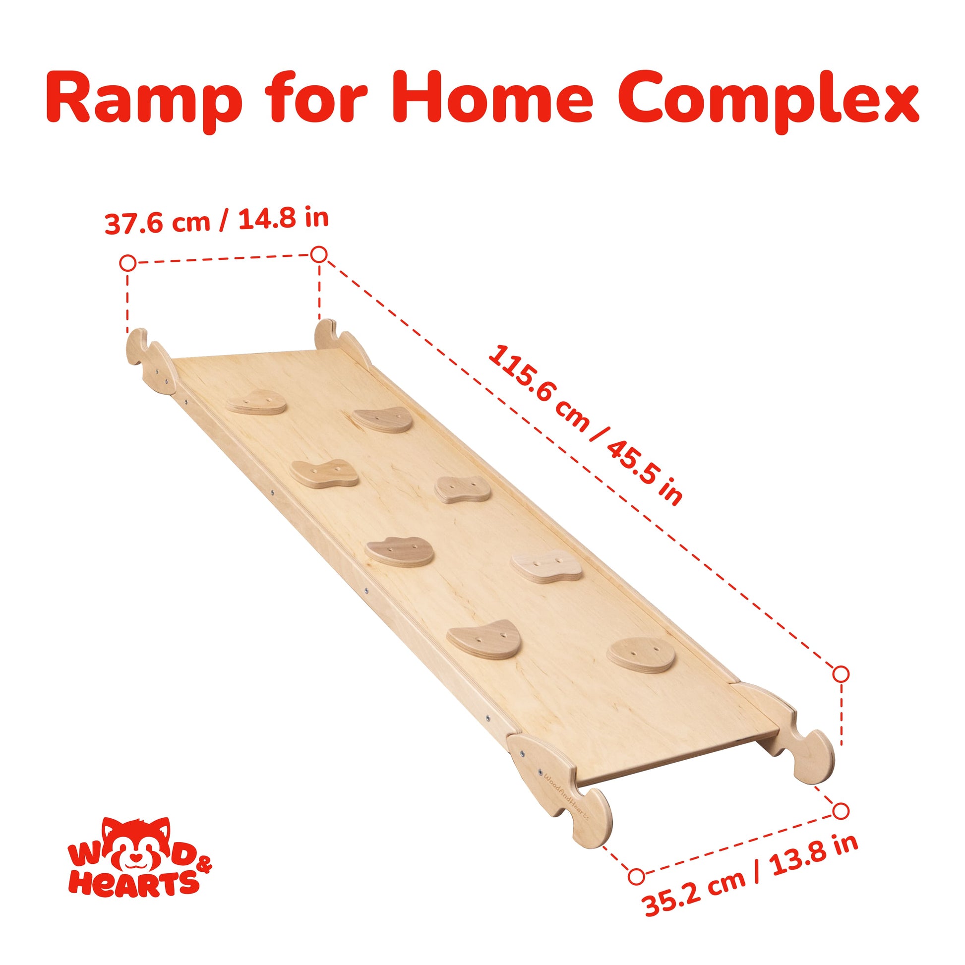 Zweiseitige Rampe/Rutsche – eine Seite mit Griffen zum Klettern, umgedreht als glatte Rutsche oder niedriger Tisch.